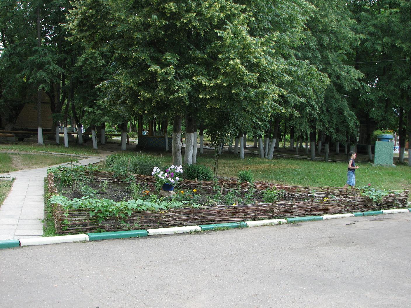 На территории лагеря «Зеленый шум» много растительности: деревьев, цветников и высаженных ухоженных клумб. Вдоль главной аллеи расположены лавочки для отдыха и детские игровые площадки. Для малышей есть городок активного досуга. Ночью лагерь хорошо освещается.