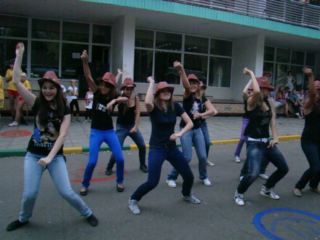 Грандиозно и масштабно проводятся не только концерты и спектакли, но и спортивные состязания. Ежедневно проходят зарядки под музыку. Раз в смену стартует общелагерная спартакиада по 11 видам спорта. Для этого лагерь оснащен всем необходимым спортинвентарем.
