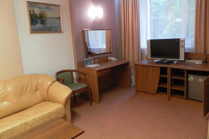 Светлые номера оформлены в классическом стиле в теплых тонах. В номерах есть телевизор с плоским экраном, холодильник и ванная комната