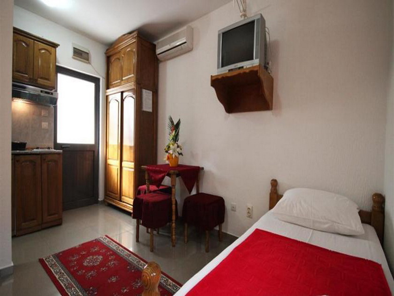 Во всех номерах TV, кондиционер, холодильник, WC /душ, бесплатный WI-FI. Все номера оборудованы мини-кухней с необходимым набором посуды. Размещение в номерах студио или апартаментах