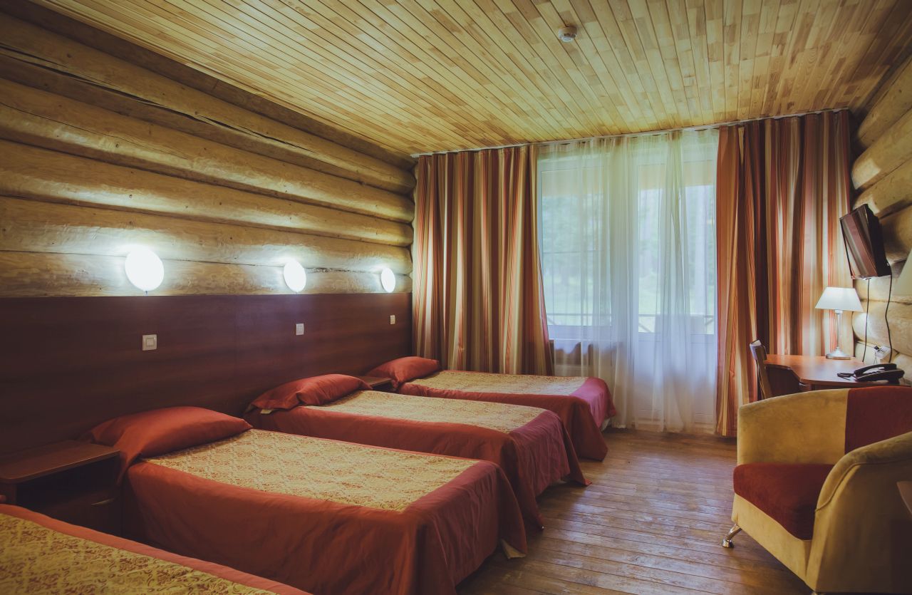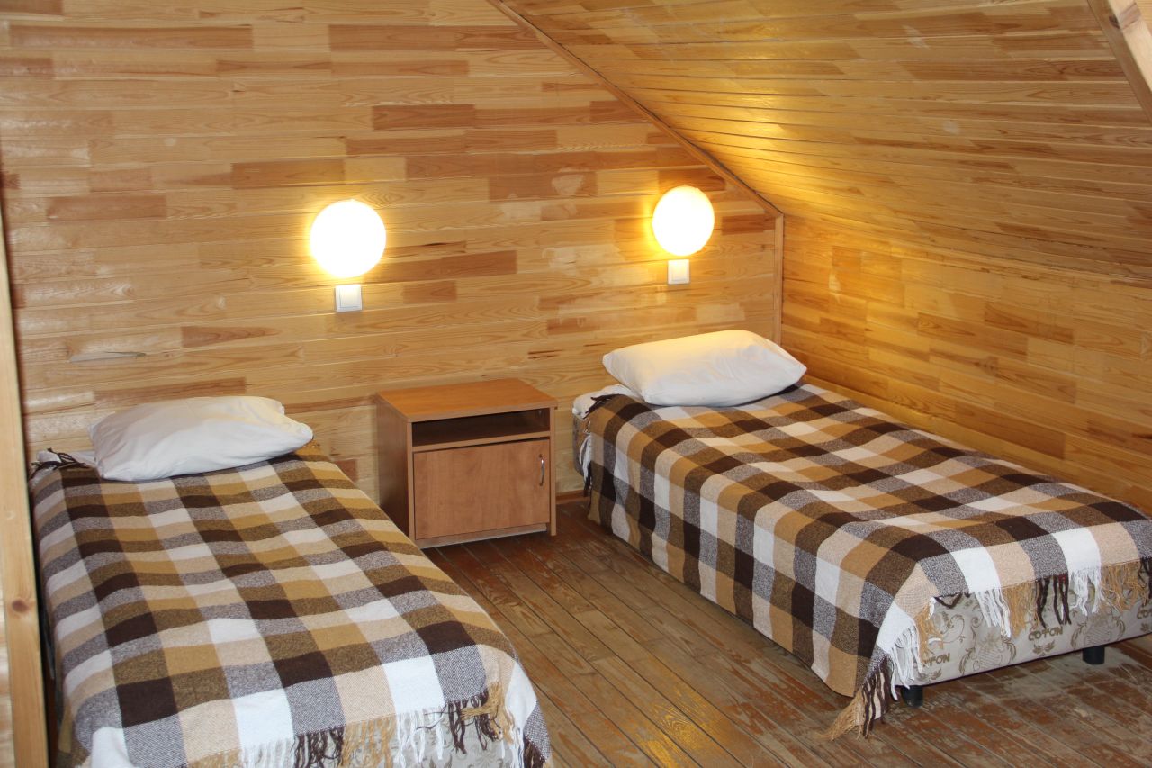 - размещение повышенной комфортности (деревянные коттеджи № 6, 21, 22, 23, 24: проживание по 2, 4, 5, 6 человек, удобства в номере)